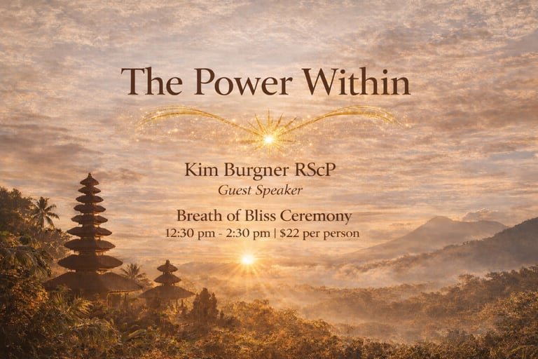 Kim returns from a 5-week sabbatical in the magical, mystical energy of Bali—bringing fresh insight, deeper presence, and renewed clarity into this experience. Bali is steeped in ritual, ceremony and daily prayer, the culture of daily prayer and reverence. Lunch break 11:30-12:25.