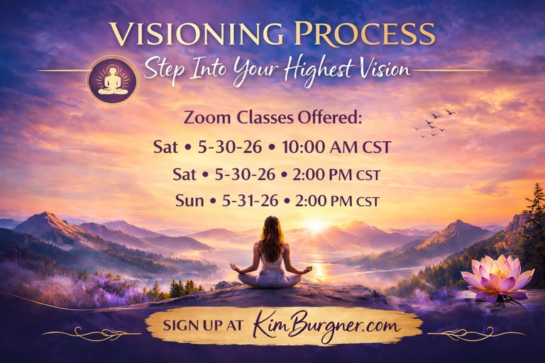 The Visioning Process: Reveal the next steps for your life! Reveal the next steps for your life, a project, or your purpose. Through a guided meditative journey, you’ll be led with intuitive prompts and invited to journal what arises—without censoring or overthinking.